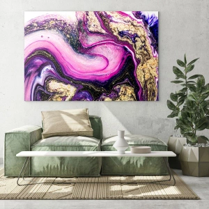 Impression sur verre - Image sur verre - Vagues abstraites dans des tons violets et dorés - 80x120cm - Un instant dans les coulisses - Décoration murale moderne pour le salon et la chambre ARTTOR