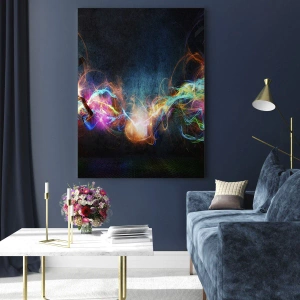 La peinture sur verre est faite sur un verre de 4 mm d'épaisseur. Les bords du verre ont une arête trapézoïdale mate. La tableau est sûr à l'utilisation et prêt à être accroché - il a des crochets en métal attachés à l'arrière du cadre et des entretoises en mousse permettant la régulation uniforme de la distance du tableau au mur.