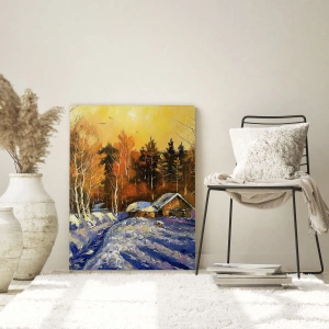 Impression sur verre - Image sur verre - Paysage d'hiver avec un chalet en bois au coucher du soleil - 50x70cm - Impression d'hiver au soleil - Décoration murale moderne pour le salon et la chambre ARTTOR