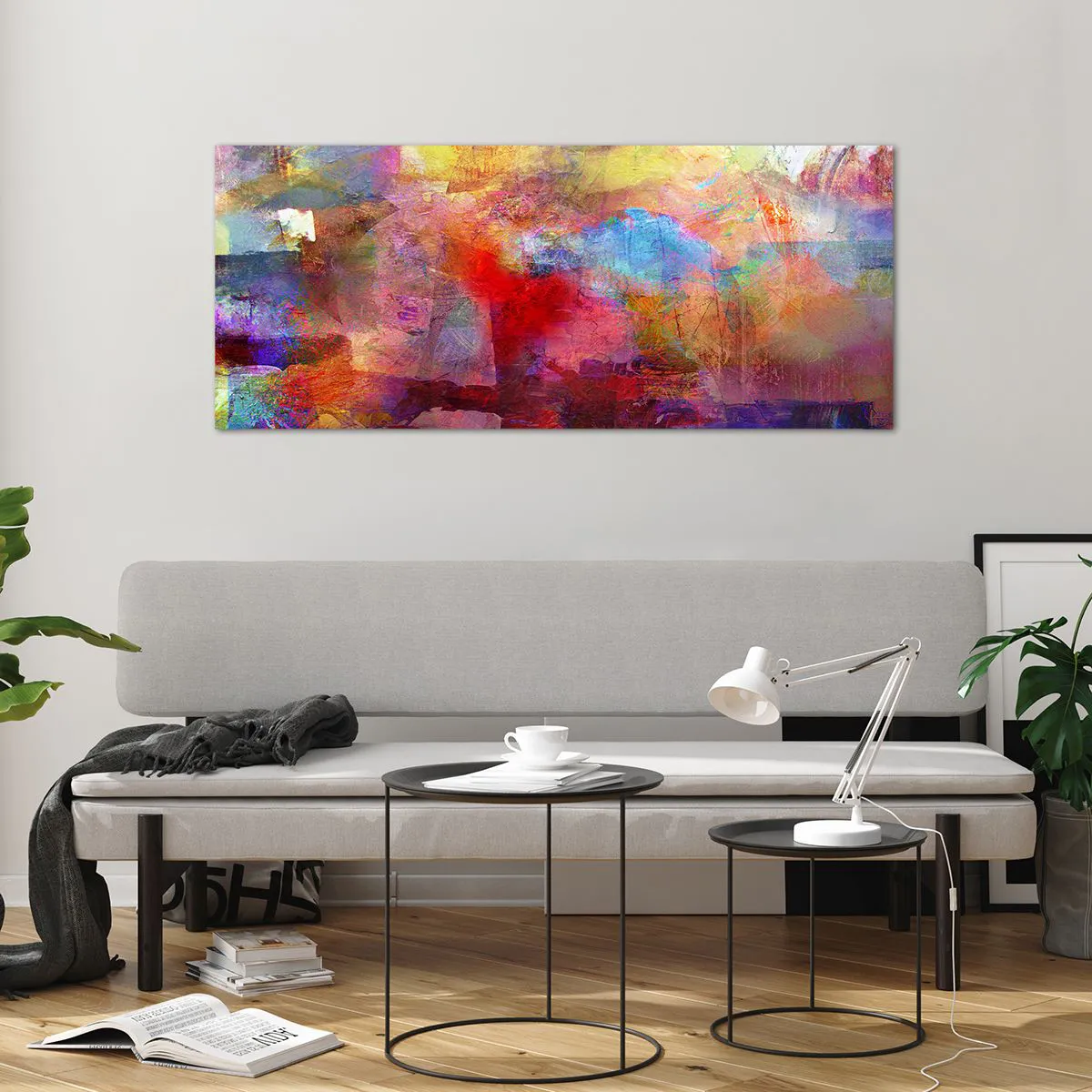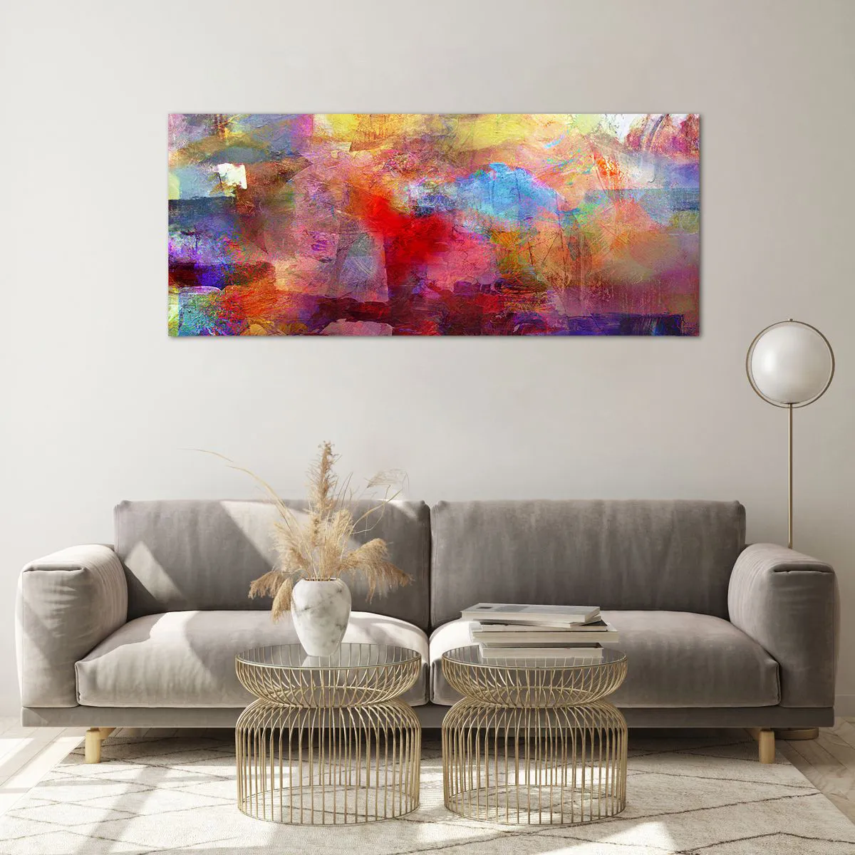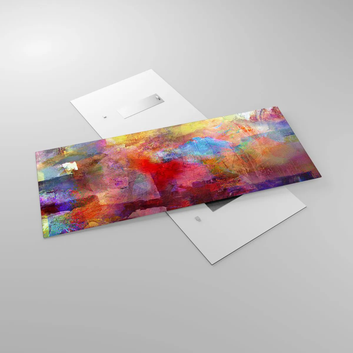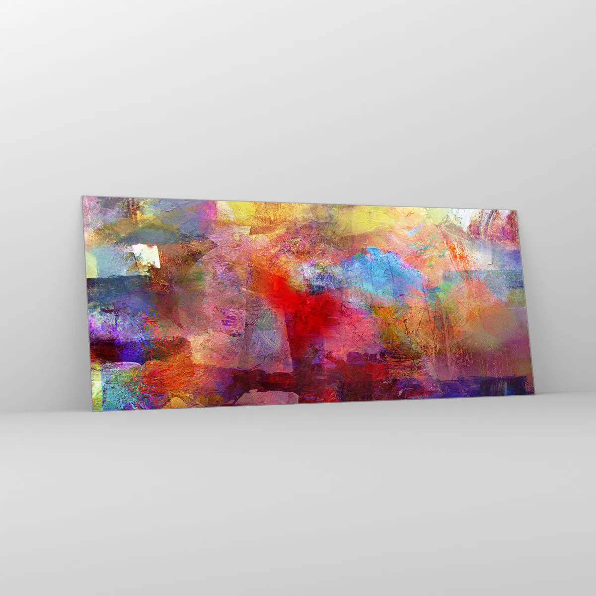 Impression sur verre - Image sur verre - Abstraction colorée dans des tons chauds et froids - 120x50cm - Regardez à l'intérieur de l'arc-en-ciel - Décoration murale moderne pour le salon et la chambre ARTTOR