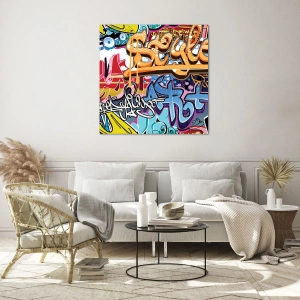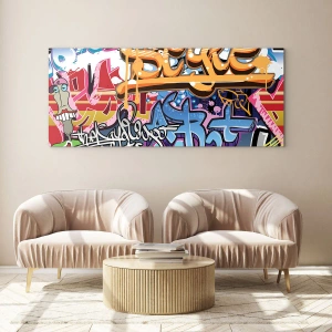 Impression sur verre - Image sur verre - Graffitis colorés avec inscriptions et illustrations dynamiques - 120x50cm - Fresques, fresques, fresques… - Décoration murale moderne pour le salon et la chambre ARTTOR