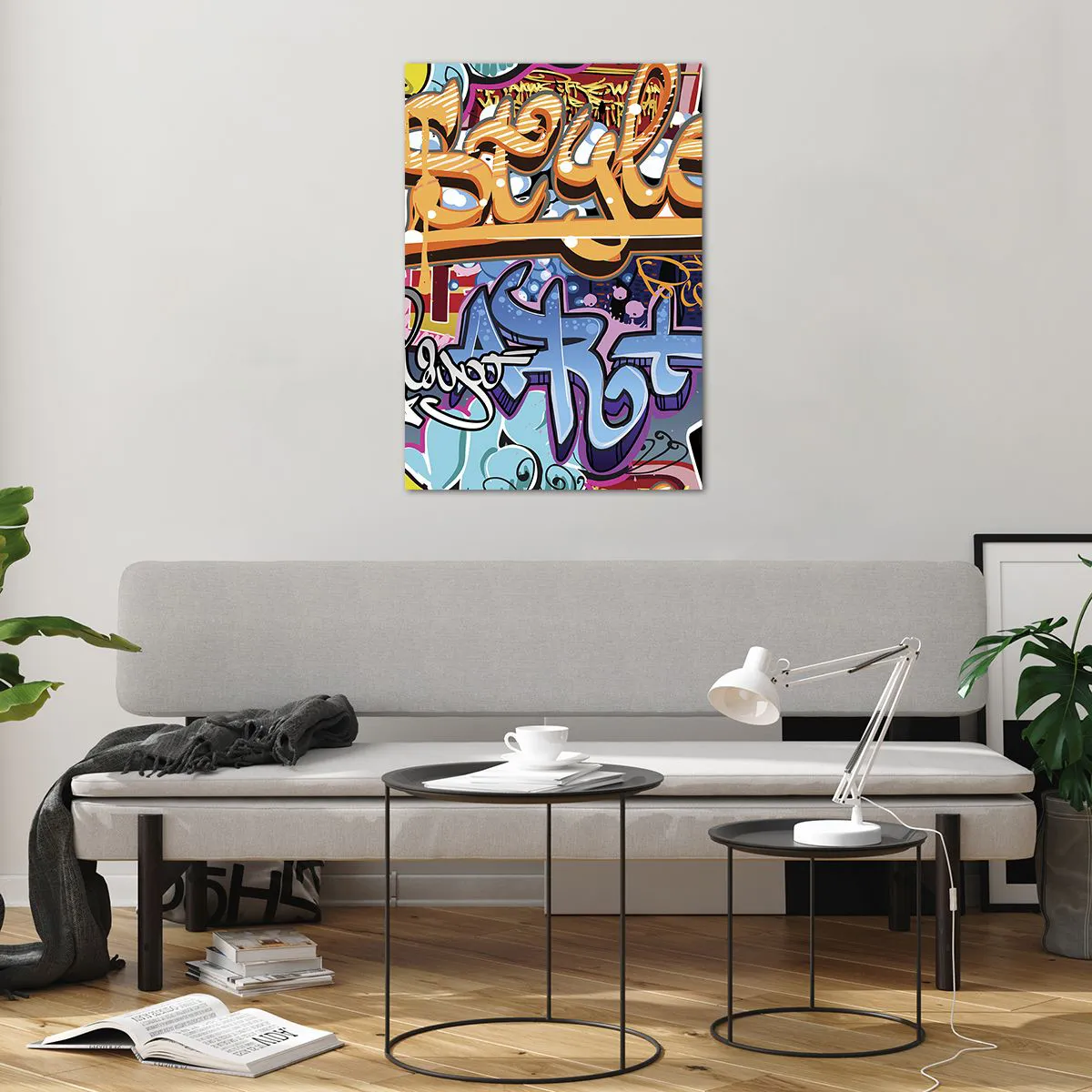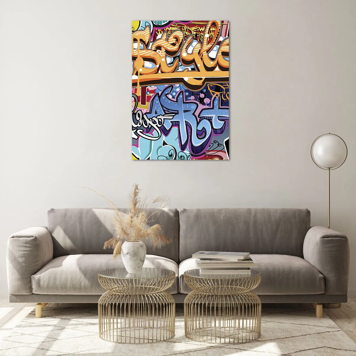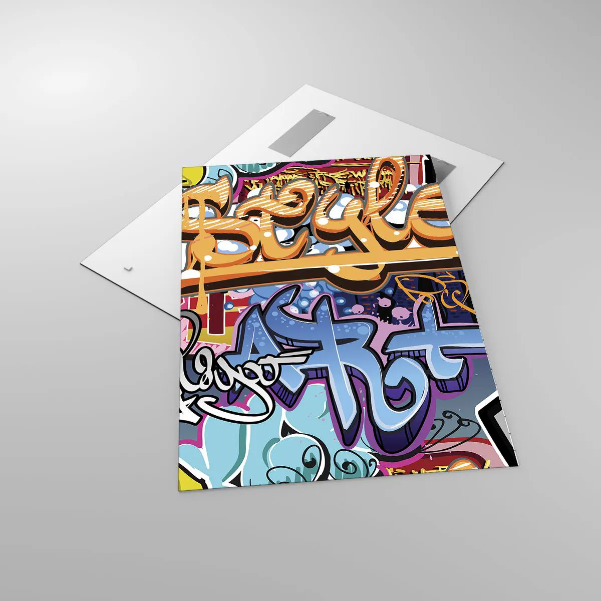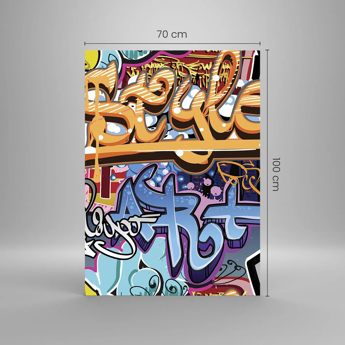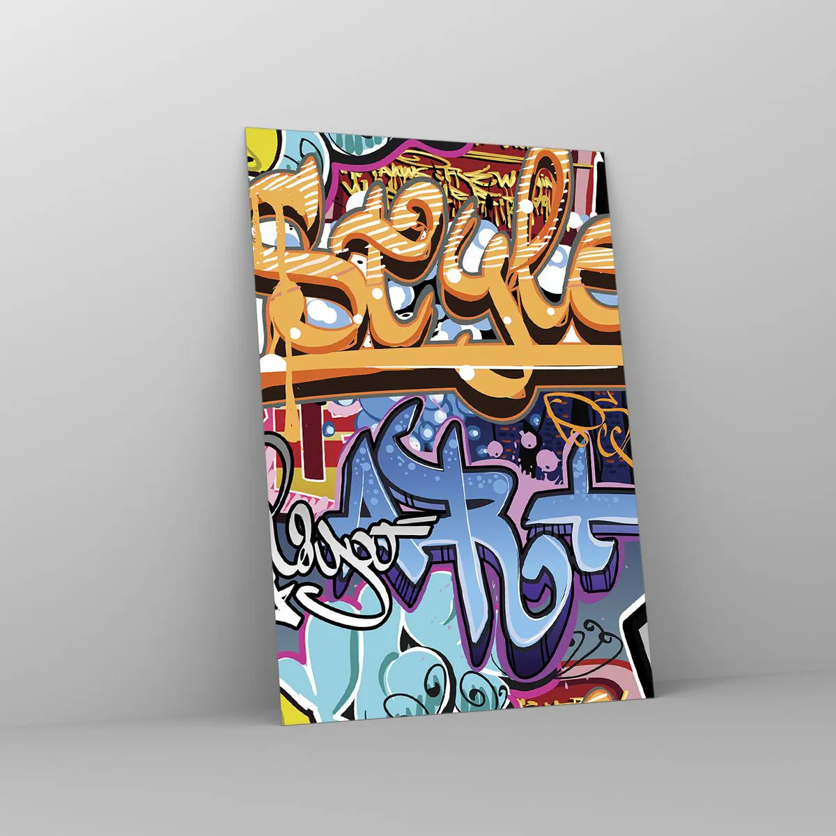 Impression sur verre - Image sur verre - Graffitis colorés avec inscriptions et illustrations dynamiques - 70x100cm - Fresques, fresques, fresques… - Décoration murale moderne pour le salon et la chambre ARTTOR