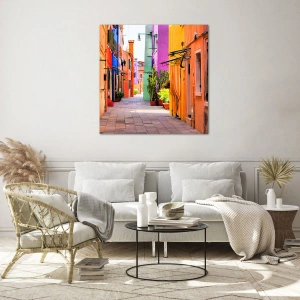 Impression sur verre - Image sur verre - Une rue colorée avec des immeubles aux tons chauds - 50x70cm - Allée arc-en-ciel - Décoration murale moderne pour le salon et la chambre ARTTOR