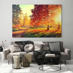 Impression sur verre - Image sur verre - Parc d'automne illuminé par la lumière du soleil - 120x50cm - Le roux est beau - Décoration murale moderne pour le salon et la chambre ARTTOR