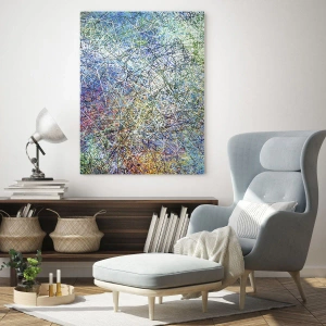 La peinture sur verre est faite sur un verre de 4 mm d'épaisseur. Les bords du verre ont une arête trapézoïdale mate. La tableau est sûr à l'utilisation et prêt à être accroché - il a des crochets en métal attachés à l'arrière du cadre et des entretoises en mousse permettant la régulation uniforme de la distance du tableau au mur.