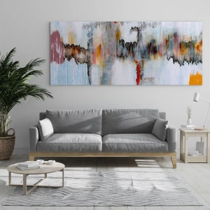 La peinture sur verre est faite sur un verre de 4 mm d'épaisseur. Les bords du verre ont une arête trapézoïdale mate. La tableau est sûr à l'utilisation et prêt à être accroché - il a des crochets en métal attachés à l'arrière du cadre et des entretoises en mousse permettant la régulation uniforme de la distance du tableau au mur.
