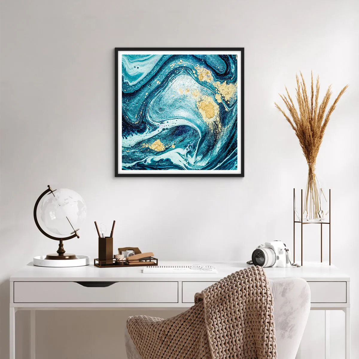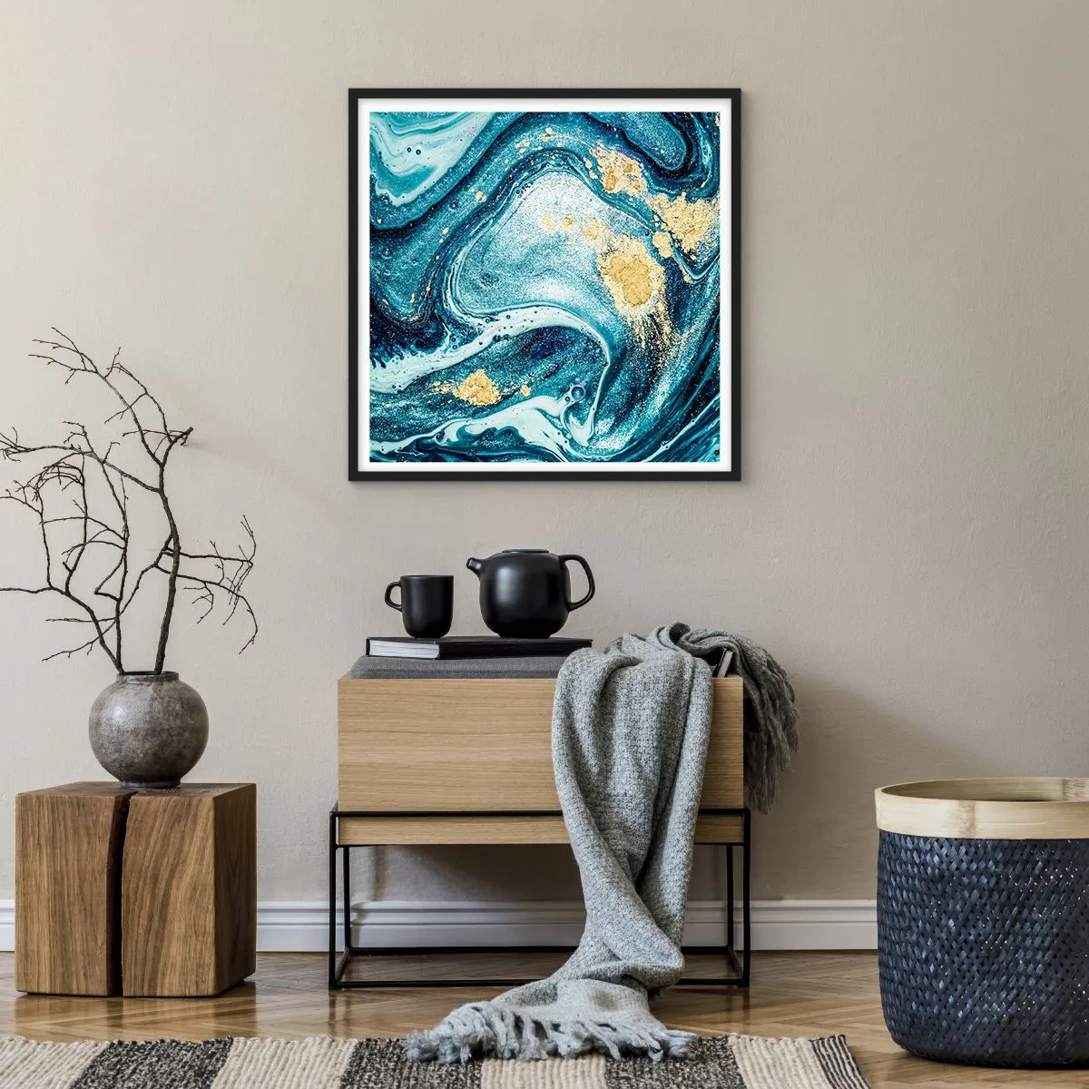 Affiche dans un cadre noir - Poster - Vortex bleu - 60x60 cm
