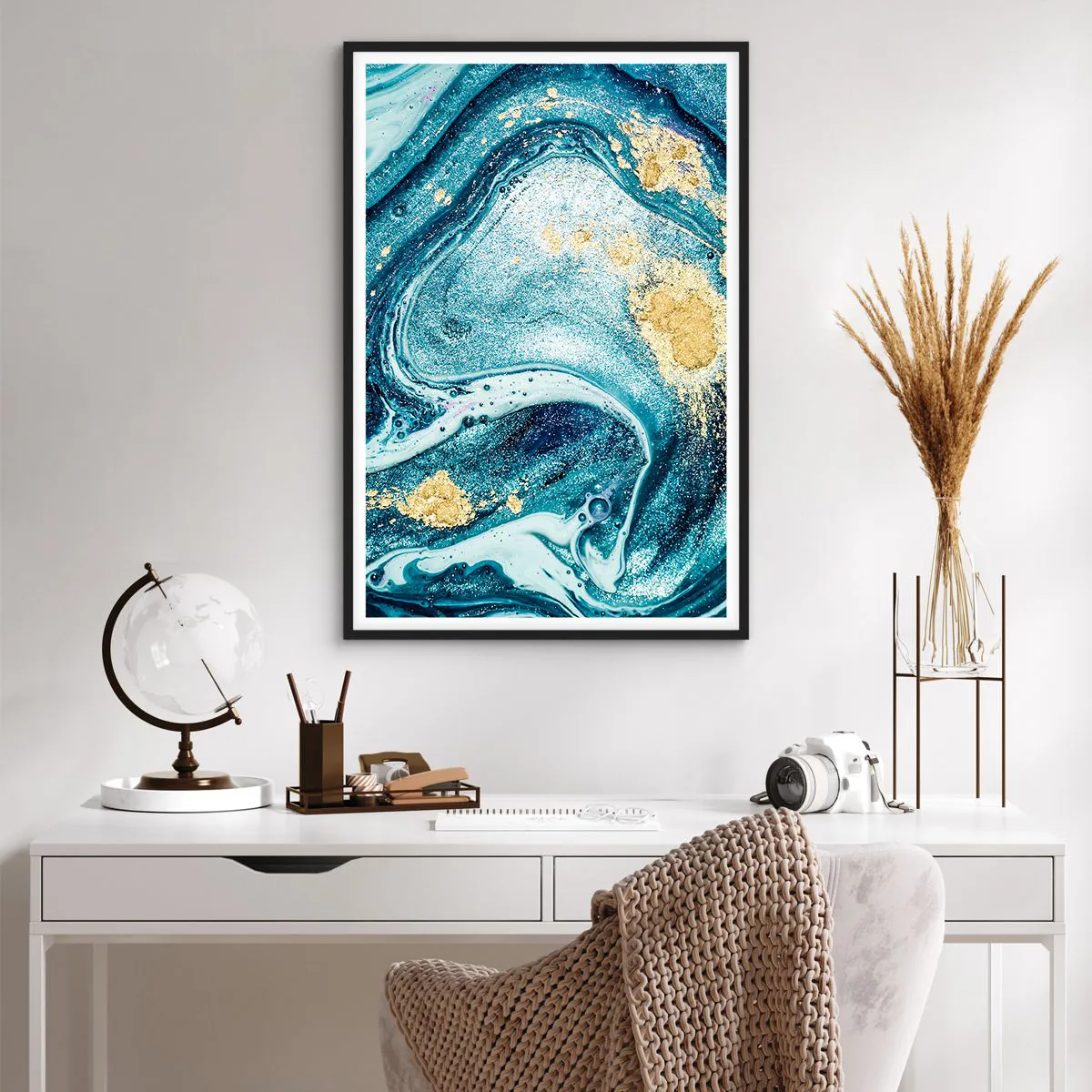 Affiche dans un cadre noir - Poster - Vortex bleu - 61x91 cm