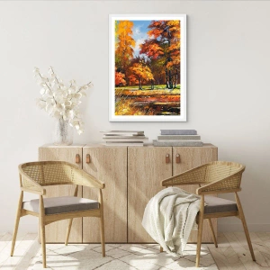 Affiche dans un cadre blanc - Poster - Paysage en or et bronze - 50x40 cm