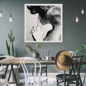 Affiche - Poster - Profil noir et blanc d'une femme faisant un geste de silence - 100x70cm - A l'écoute d'elle-même - Décoration murale moderne pour le salon et la chambre ARTTOR