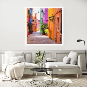 Affiche - Poster - Une rue colorée avec des plantes et des façades de bâtiments vibrantes - 50x70cm - Allée arc-en-ciel - Décoration murale moderne pour le salon et la chambre ARTTOR