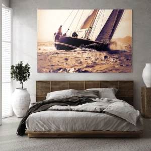 Peinture murale - Voile, Marin - Voilier sur une mer agitée aux tons chauds