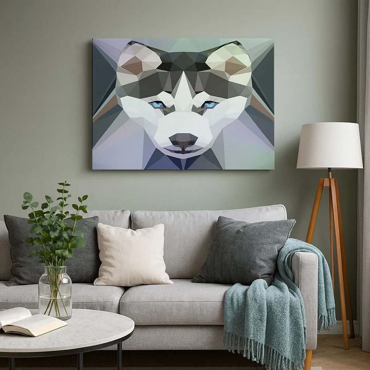 - Un loup géométrique aux yeux bleus saisissants. Une décoration moderne pour les amateurs d'art contemporain.