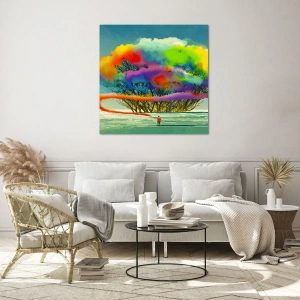 Impression sur verre - Image sur verre - Une explosion de fumée colorée sur fond d'arbre solitaire. - 120x80cm - Donner vie à ce monde - Décoration murale moderne pour le salon et la chambre ARTTOR