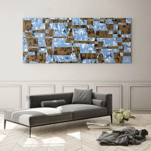 Impression sur verre - Image sur verre - Une composition abstraite de rectangles dans des tons de marron et de bleu. - 160x50cm - Une découpe non humaine - Décoration murale moderne pour le salon et la chambre ARTTOR