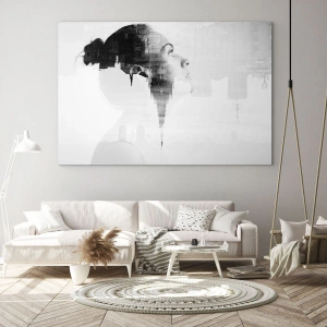 Impression sur verre - Image sur verre - Silhouette d'une femme avec des éléments architecturaux en arrière-plan - 120x80cm - Des deux côtés du verre - Décoration murale moderne pour le salon et la chambre ARTTOR