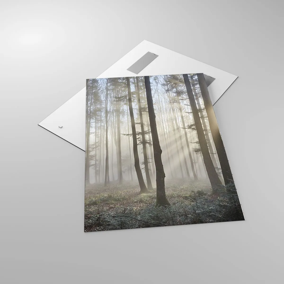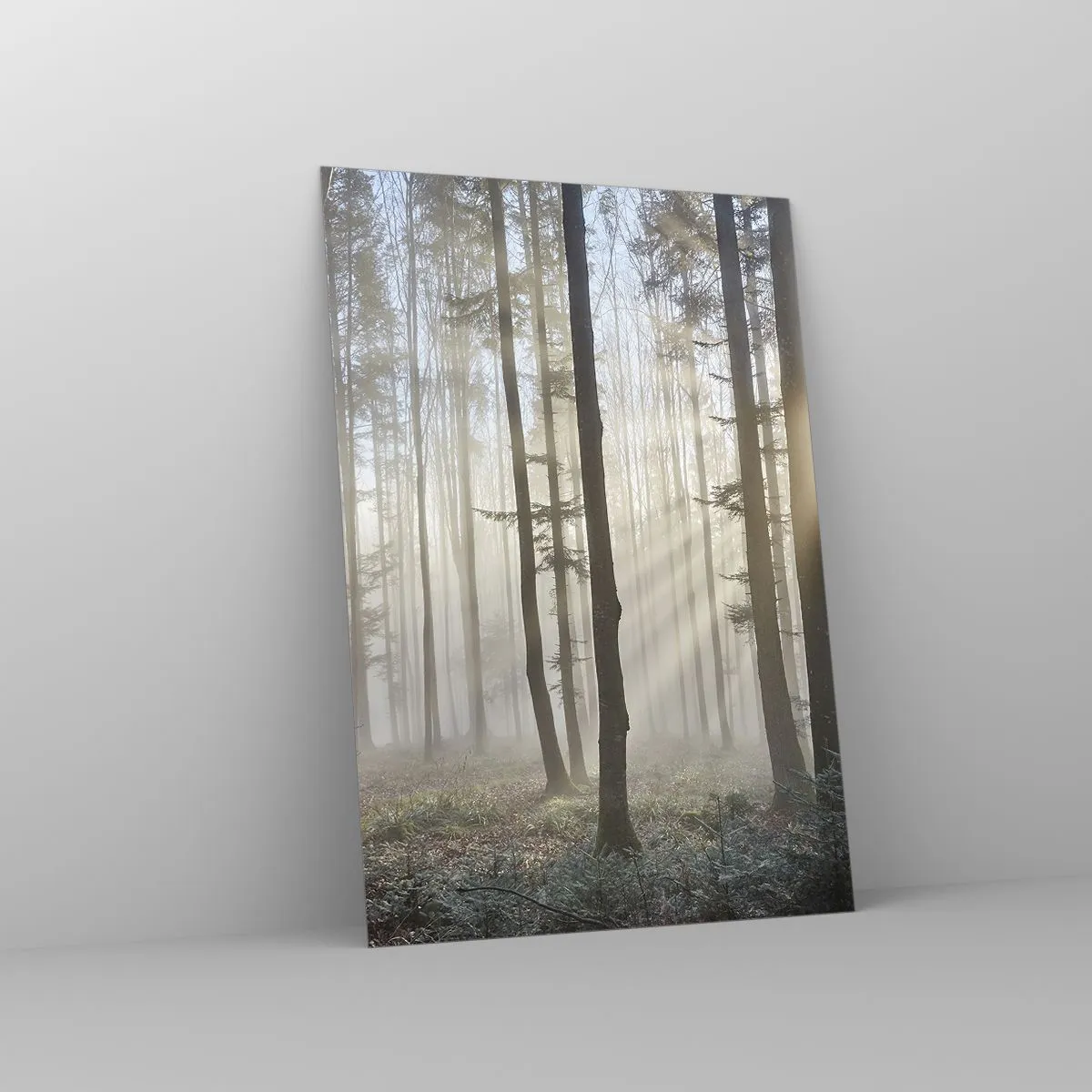 Impression sur verre - Image sur verre - Une forêt dans un léger brouillard avec des rayons de soleil qui brillent à travers les arbres - 70x100cm - Le brouillard s'est aussi réveillé - Décoration murale moderne pour le salon et la chambre ARTTOR