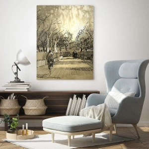 Le tableau « Un instant capturé à la plume » est une composition unique représentant un parc capturé sous forme de dessin. La scène avec des sentiers et des personnages en marche respire la paix et la nostalgie, créant une atmosphère harmonieuse et chaleureuse.