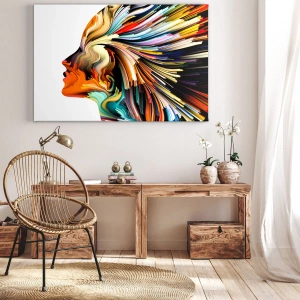 Impression sur toile - Image sur toile - Profil de visage abstrait avec des lignes dynamiques colorées. - 70x50cm - Une explosion d'imaginaire - Décoration murale moderne pour le salon et la chambre ARTTOR