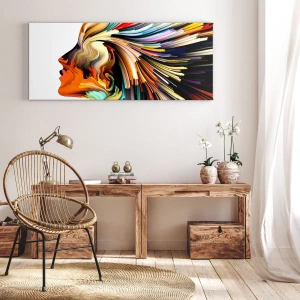 - Cette composition moderne représente un profil de visage abstrait aux lignes dynamiques et colorées, symbole de mouvement et d'énergie. Elle est idéale pour décorer un intérieur au style moderne, inspirant et artistique.