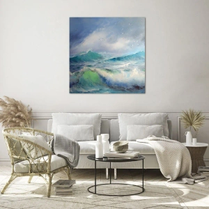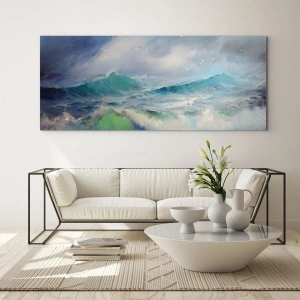 Impression sur verre - Image sur verre - De grosses vagues sur l'océan - 120x50cm - "Le tourbillon hurlait de triomphe..." - Décoration murale moderne pour le salon et la chambre ARTTOR