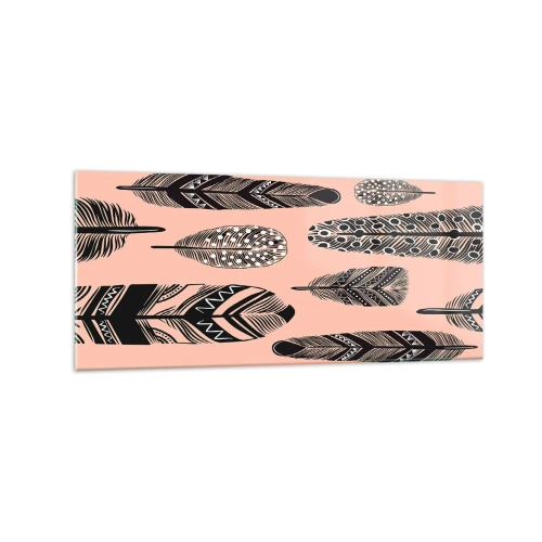 Impression sur verre - Image sur verre - Plumes décoratives sur fond clair - 120x50cm - Collection indienne - Décoration murale moderne pour le salon et la chambre ARTTOR