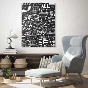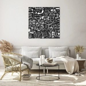 Impression sur verre - Image sur verre - Graphiques et lettrages de café sur fond noir dans un style rétro - 50x70cm - Tout ce dont tu as besoin c'est… - Décoration murale moderne pour le salon et la chambre ARTTOR
