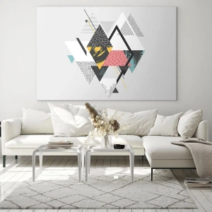 Impression sur verre - Image sur verre - Composition géométrique abstraite avec des triangles et des losanges - 50x70cm - Variation sur triangle et losange - Décoration murale moderne pour le salon et la chambre ARTTOR