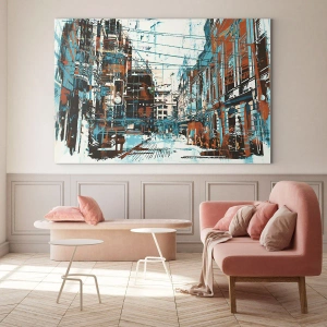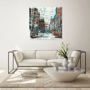 Impression sur verre - Image sur verre - Un paysage urbain aux tons bleus et orange - 80x120cm - Un sentier de ville usé - Décoration murale moderne pour le salon et la chambre ARTTOR