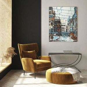 La peinture sur verre est faite sur un verre de 4 mm d'épaisseur. Les bords du verre ont une arête trapézoïdale mate. La tableau est sûr à l'utilisation et prêt à être accroché - il a des crochets en métal attachés à l'arrière du cadre et des entretoises en mousse permettant la régulation uniforme de la distance du tableau au mur.