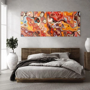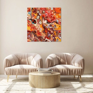 Impression sur verre - Image sur verre - Composition abstraite dans les tons orange et rouge - 100x70cm - Si les noix fondaient dans du miel - Décoration murale moderne pour le salon et la chambre ARTTOR