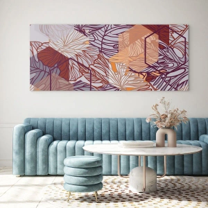 Impression sur verre - Image sur verre - Feuilles graphiques sur fond de formes géométriques - 50x70cm - Relation impossible entre la géométrie et la nature - Décoration murale moderne pour le salon et la chambre ARTTOR