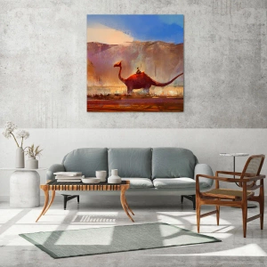 Impression sur verre - Image sur verre - Une scène fantastique avec un cavalier sur une créature préhistorique - 80x120cm - S'ils n'avaient pas disparu - Décoration murale moderne pour le salon et la chambre ARTTOR