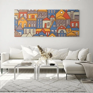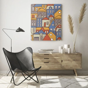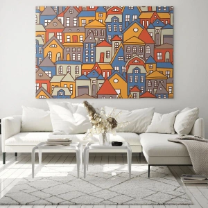 Impression sur verre - Image sur verre - Maisons colorées dans un style graphique sur fond clair - 80x120cm - Derrière la maison, une maison - Décoration murale moderne pour le salon et la chambre ARTTOR