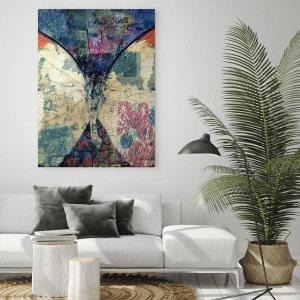 Impression sur verre - Image sur verre - Un papillon coloré sur un fond abstrait dans des tons de bleu et d'orange. - 120x80cm - Fragilité subtile - Décoration murale moderne pour le salon et la chambre ARTTOR