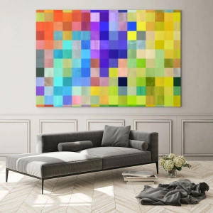 Impression sur verre - Image sur verre - Blocs géométriques colorés dans des tons vifs et vibrants - 100x70cm - Tous différents, tous égaux - Décoration murale moderne pour le salon et la chambre ARTTOR