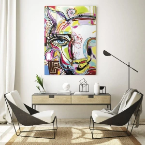 Le motif abstrait du visage de chat symbolise la créativité, la liberté et l'inspiration. Cette œuvre d'art attire le regard et crée une atmosphère unique dans votre intérieur, soulignant son caractère unique.