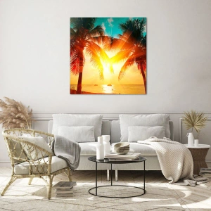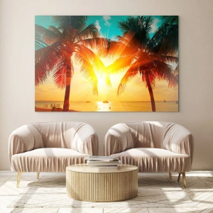 Impression sur verre - Image sur verre - Palmiers ensoleillés sur une plage tropicale - 50x70cm - Couple exotique - Décoration murale moderne pour le salon et la chambre ARTTOR