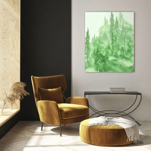 Impression sur verre - Image sur verre - Forêt verte dans un style aquarelle - 50x70cm - Flou de brouillard vert - Décoration murale moderne pour le salon et la chambre ARTTOR