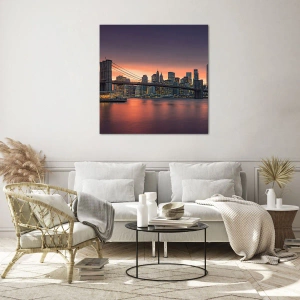 Impression sur verre - Image sur verre - Panorama nocturne de la ville avec un pont et un ciel illuminé - 80x120cm - Immergé dans le silence lilas - Décoration murale moderne pour le salon et la chambre ARTTOR