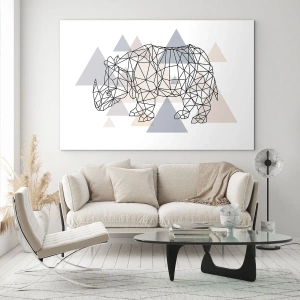 Impression sur verre - Image sur verre - Dessin géométrique d'un rhinocéros sur fond clair - 70x50cm - Structure de force - Décoration murale moderne pour le salon et la chambre ARTTOR