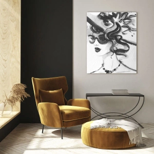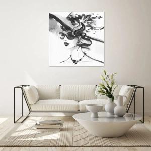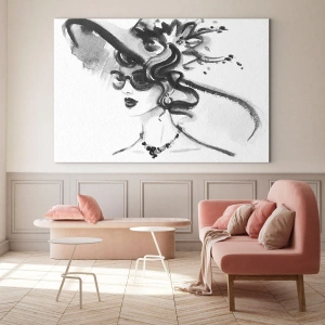 Impression sur verre - Image sur verre - Femme élégante avec un chapeau de style noir et blanc - 160x50cm - Une dame de caractère - Décoration murale moderne pour le salon et la chambre ARTTOR