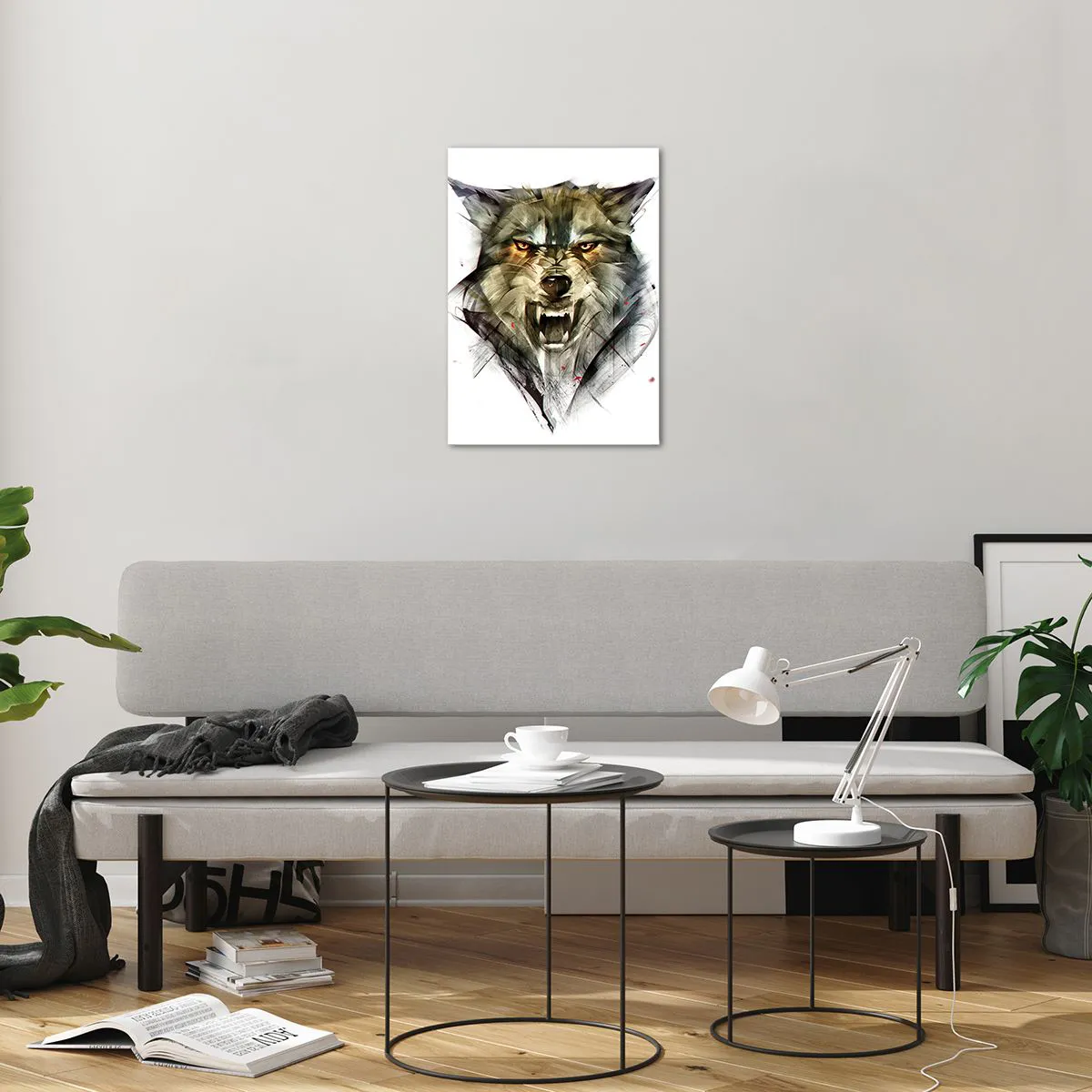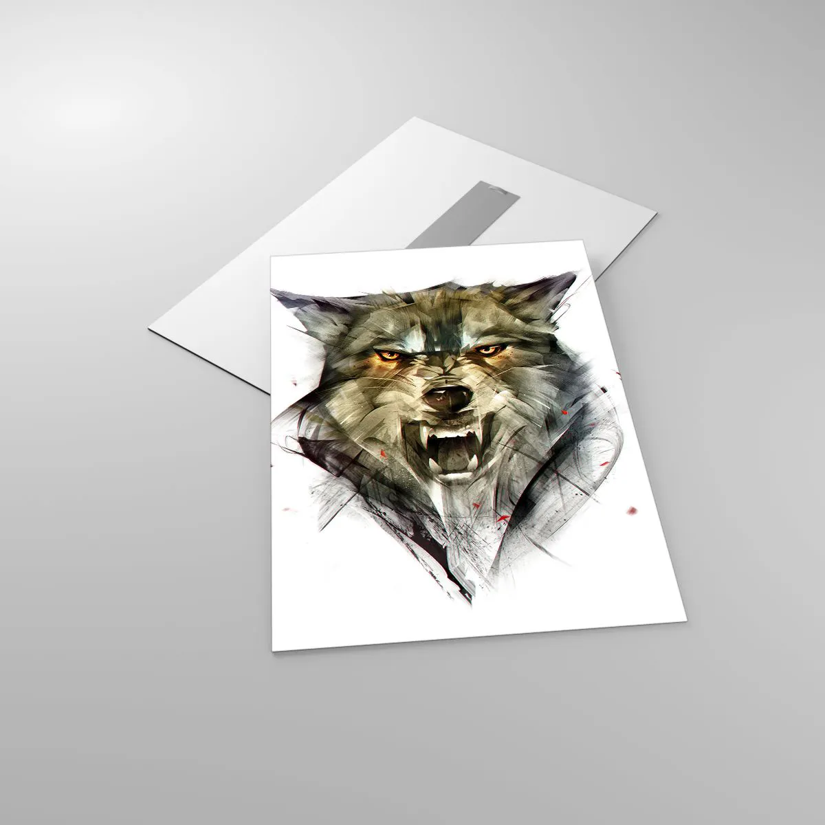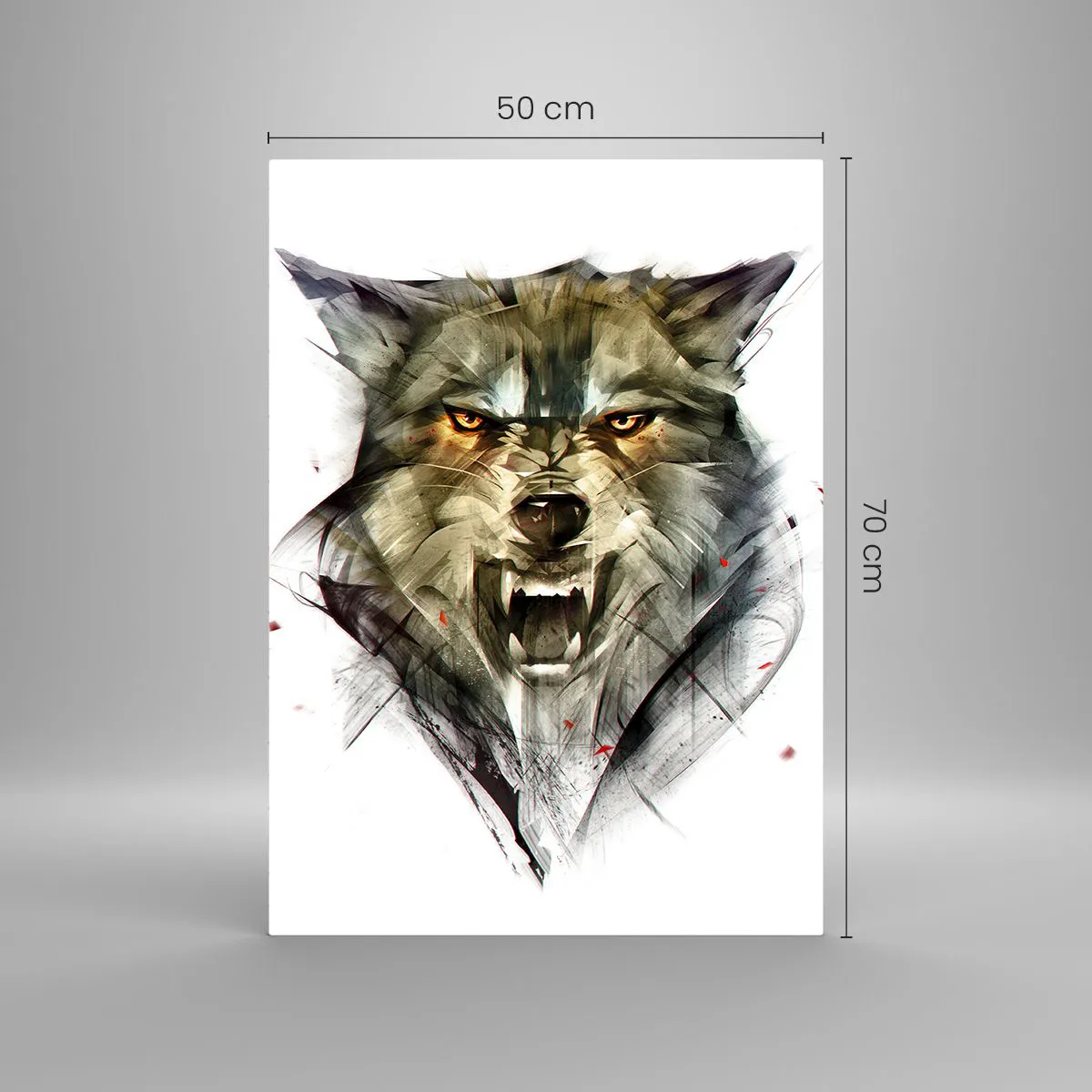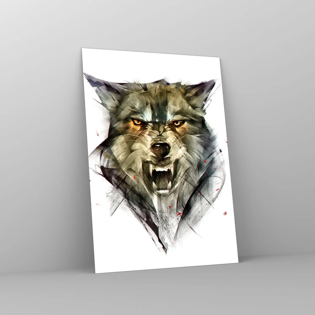 Impression sur verre - Image sur verre - Un graphique d'un loup menaçant avec une bouche ouverte et un regard intense - 50x70cm - Pas un pas ! - Décoration murale moderne pour le salon et la chambre ARTTOR