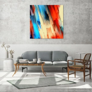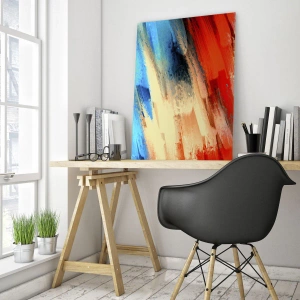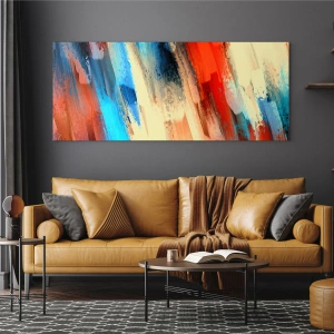 Impression sur verre - Image sur verre - Coup de pinceau abstrait dans les tons bleu et orange - 70x100cm - Une cascade de couleurs - Décoration murale moderne pour le salon et la chambre ARTTOR