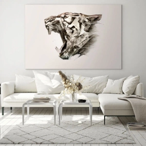 Impression sur verre - Image sur verre - Image abstraite d'un tigre dans des tons beiges - 70x100cm - Vous savez déjà qui est en charge - Décoration murale moderne pour le salon et la chambre ARTTOR