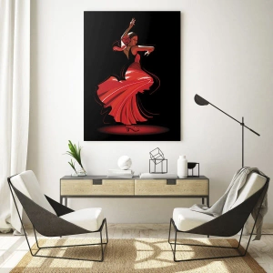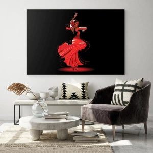 Impression sur verre - Image sur verre - Danseuse de flamenco en robe rouge sur fond noir - 120x80cm - L'esprit fougueux du flamenco - Décoration murale moderne pour le salon et la chambre ARTTOR