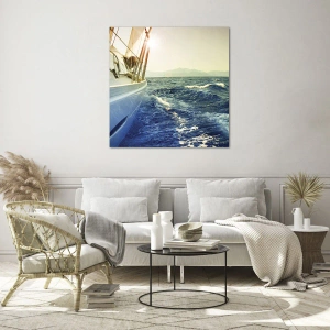 Impression sur verre - Image sur verre - Un yacht en pleine mer avec vue sur les vagues - 70x100cm - Suite à l'aventure - Décoration murale moderne pour le salon et la chambre ARTTOR