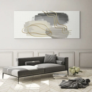 Impression sur verre - Image sur verre - Lignes dorées abstraites sur fond gris - 70x100cm - Durée et mouvement - Décoration murale moderne pour le salon et la chambre ARTTOR