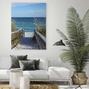Impression sur verre - Image sur verre - Chemin vers la plage avec vue sur la mer - 70x50cm - Au soleil, sous le vent - Décoration murale moderne pour le salon et la chambre ARTTOR