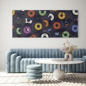 Impression sur verre - Image sur verre - Des vinyles colorés empilés les uns sur les autres - 140x50cm - Couleurs des classiques - Décoration murale moderne pour le salon et la chambre ARTTOR